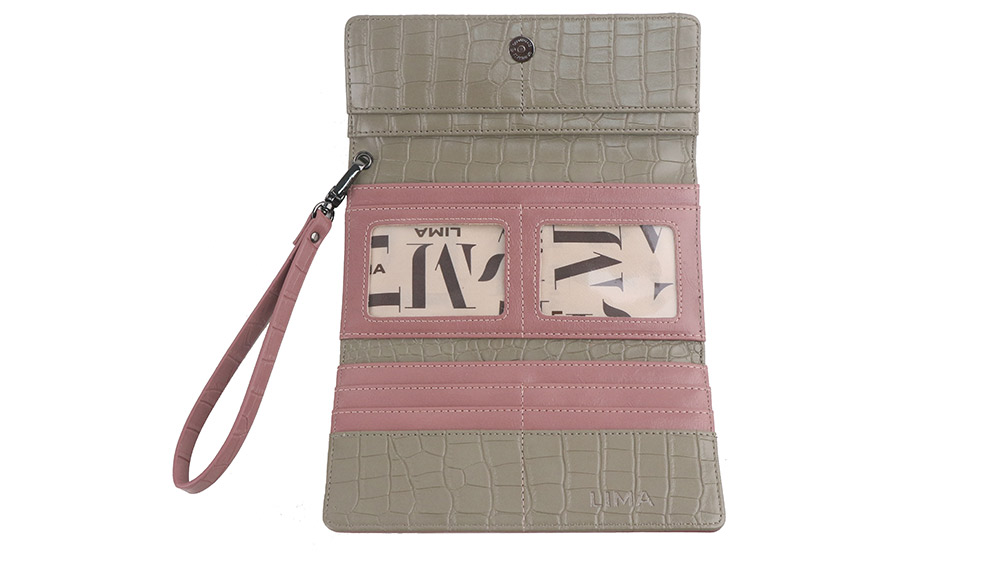 Descripción: Esta billetera grande de PU sÃmil croco combina elegancia y funcionalidad en un diseño clásico y sofisticado. Su forma triangular le aporta un toque distintivo, mientras que su interior está diseñado para organizar todo con practicidad: cuenta con bolsillos para tarjetas, fotos y dinero, manteniendo todo en su lugar sin perder estilo. Delgada y refinada, es el accesorio ideal para quienes buscan un diseño atemporal con un acabado elegante. Medidas: 19,5 x 1,5 x 10 Materiales: CUERPO: 100%PU // FORRERIA: 20%ALGODÓN 80%POLYESTER