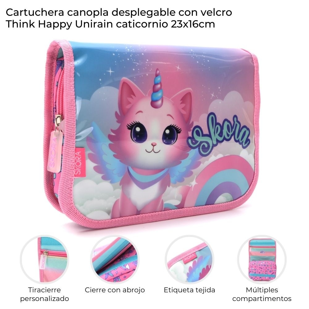 Cartuchera canopla desplegable con velcro Think Happy Uni-Rain caticornio