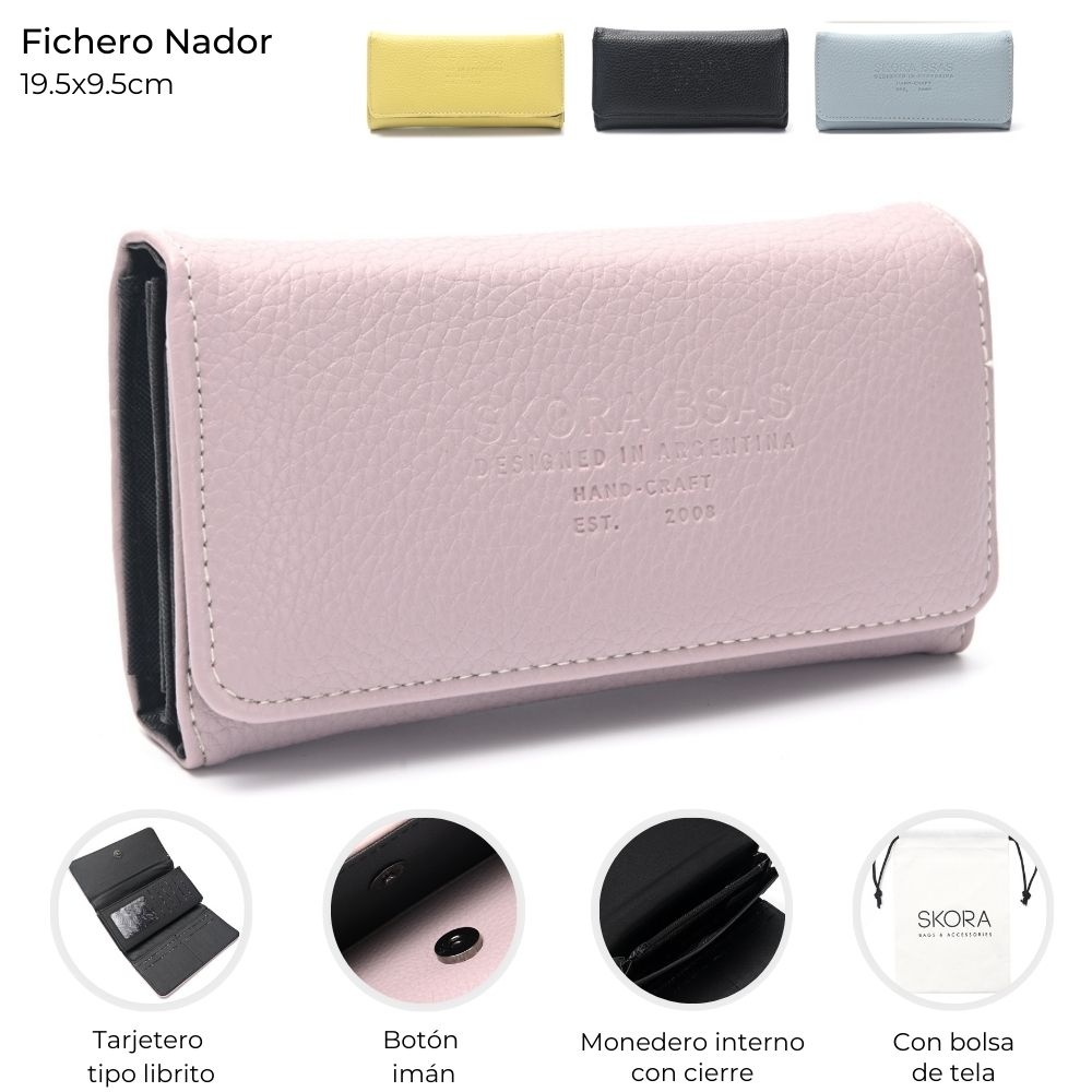 Descripción: Marca Skora Tipo Fichero Material PU Linea Buenos Aires 19.5x9.5cm con bolsa de tela