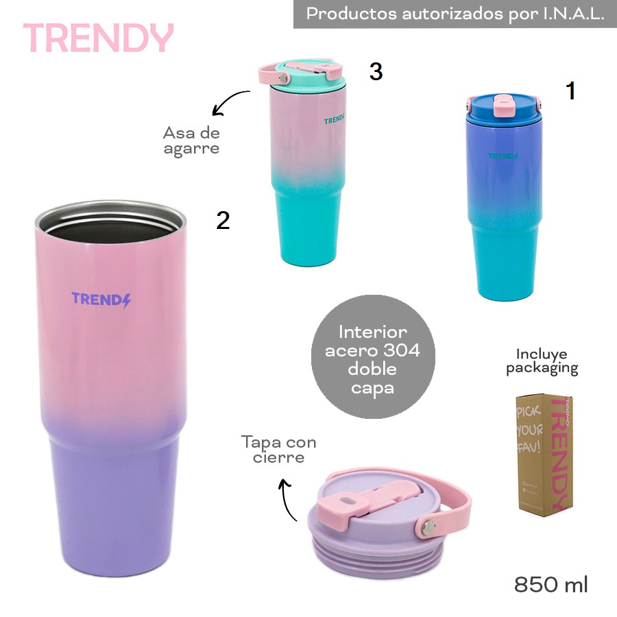 Descripción: El Vaso Trendy Térmico de 850 mL es la solución perfecta para quienes buscan disfrutar de sus bebidas favoritas en cualquier momento del dÃa. Con un diseño elegante y funcional, este vaso es ideal para mantener tus bebidas frÃas hasta 8 horas y calientes hasta 4 horas, permitiéndote disfrutar de cada sorbo a la temperatura perfecta. Fabricado en acero inoxidable, este vaso no solo es duradero, sino que también cuenta con una manija ergonómica y una tapa segura que evita derrames. Su diámetro de 6,5 cm y altura de 24 cm lo hacen fácil de llevar y almacenar, convirtiéndolo en un compañero ideal para el hogar, la oficina o actividades al aire libre. El Vaso Trendy es versátil y se adapta a diferentes tipos de lÃquidos, lo que lo convierte en una opción práctica para el café de la mañana, el té de la tarde o un refrescante batido. Su diseño moderno y funcionalidad lo hacen un accesorio imprescindible para quienes valoran la calidad y el estilo en su dÃa a dÃa.